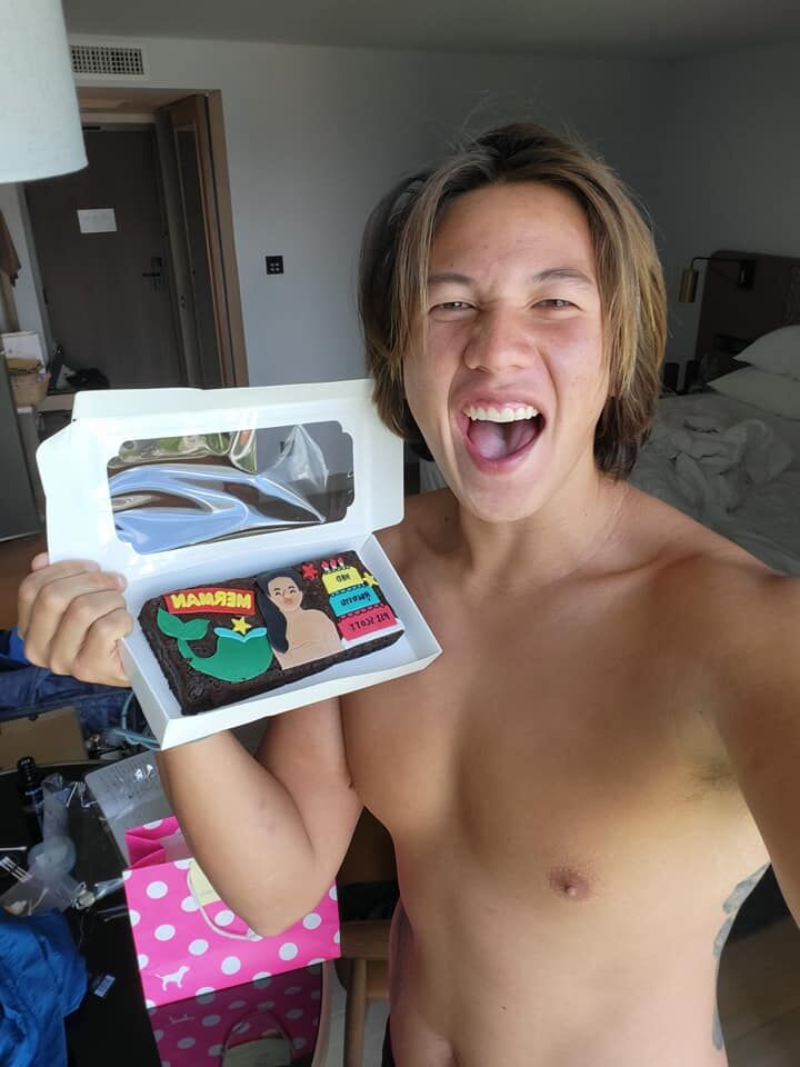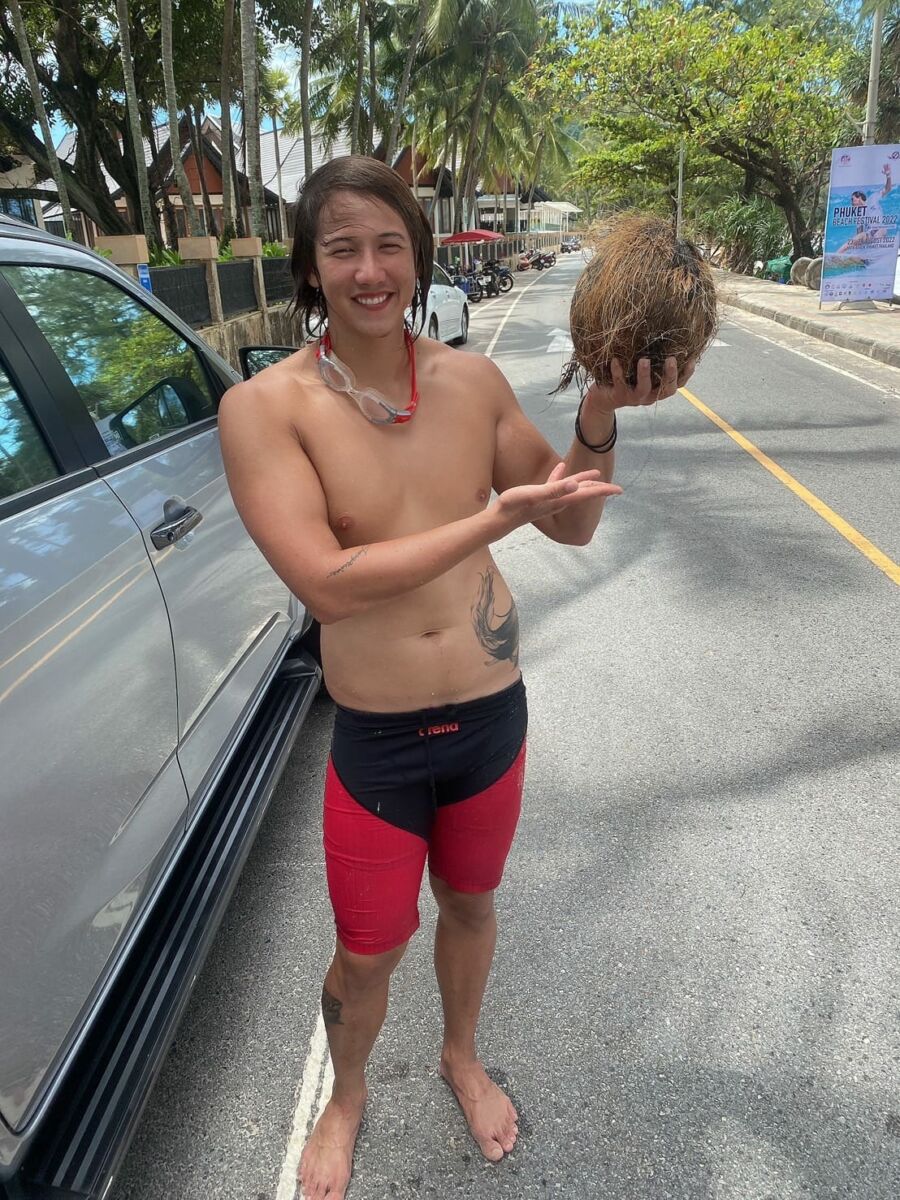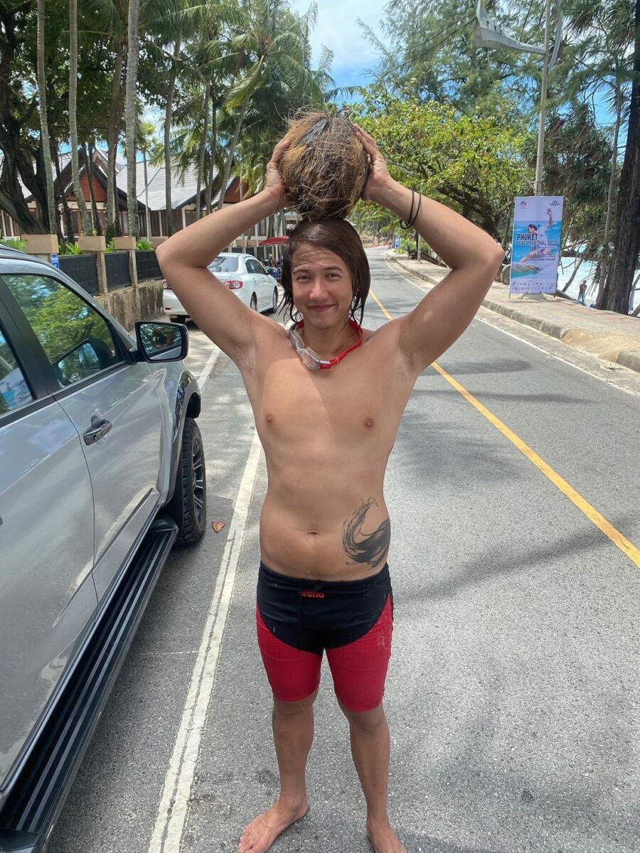 “ขอบคุณทุกคนสำหรับกำลังใจ ใน 6 ชม. ได้ว่ายน้ำข้ามทะเลจากหาดอ่าวนางไปยังเกาะปอดะแล้วตัดสินว่ายข้ามทะเลกลับมาหาดอ่าวนาง ได้ทำตามเป้าหมายที่ได้ตั้งไว้ให้ตัวเอง ไม่แน่นอนว่าระยะทางเท่าไร่ แต่รู้ว่า over 15 km สำหรับระยะทางที่ไม่นับกระแส”