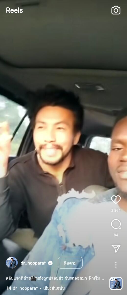 ล่าสุด หมอสอง ท่องโลก โพสต์คลิปลง IG เผยคลิปแรกหลังจากที่ถูกปล่อยตัว โดยบนรถนั้นมีเพื่อนร่วมชะตากรรมชีวิตที่ถูกจับไปอีกสองคนร่วมคลิปด้วย โดยหมอสองกล่าวว่า “คลิปแรกที่ถ่าย หลังถูกปล่อยตัว ขับรถออกมา ฟ้าเริ่มสาง ถนนใหญ่ขึ้น ใจชื้น คิดว่าน่าจะปลอดภัยแน่แล้ว ดีใจอย่างบอกไม่ถูก วันที่รอคอย #หมอสอง #ถูกลักพาตัว 25วัน แสนทรมาน #ประเทศมาลี ผู้ร่วมชะตาชีวิต เซตดูและยาคูบ้า บันทึกในความทรงจำ (ขออนุญาตแล้วก่อนโพสต์)”