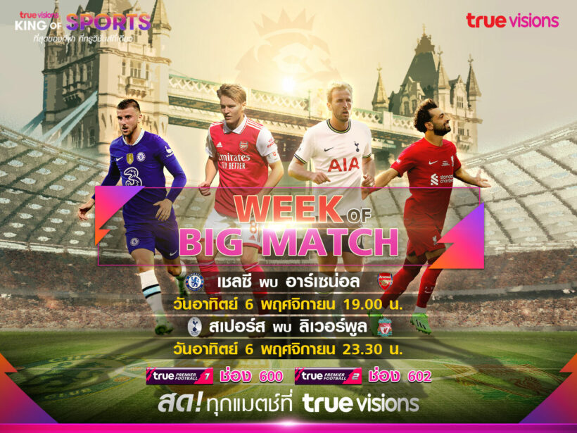 6 พ.ย. นี้!!!! “ทรูวิชั่นส์” ยิงสดพรีเมียร์ลีก “สัปดาห์แห่งบิ๊กแมตช์” “เชลซี ปะทะ อาร์เซนอล” และ “สเปอร์ส พบ ลิเวอร์พูล”