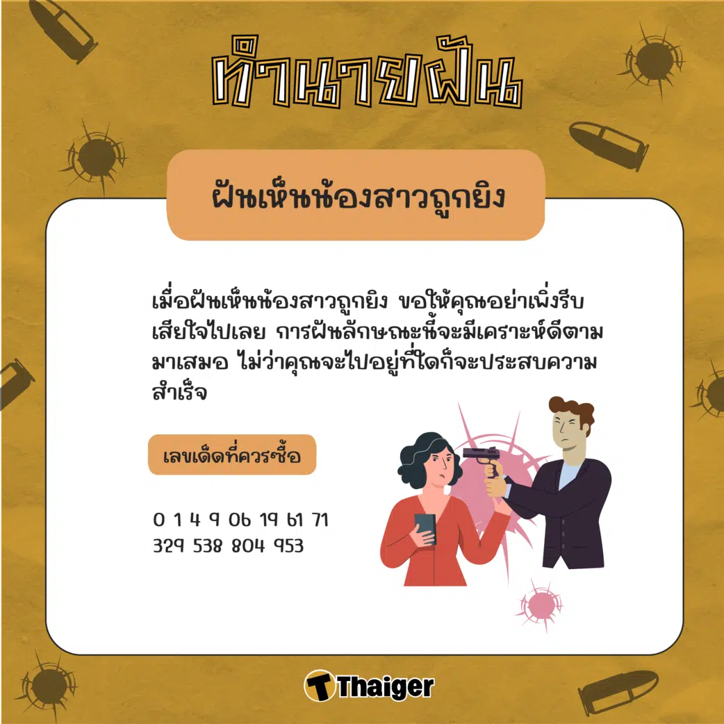 - เลขเด็ด ฝันว่าโดนไล่ยิง : ควรมีเลข 6