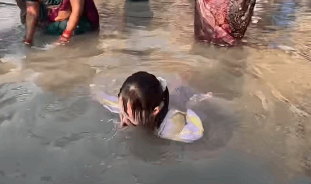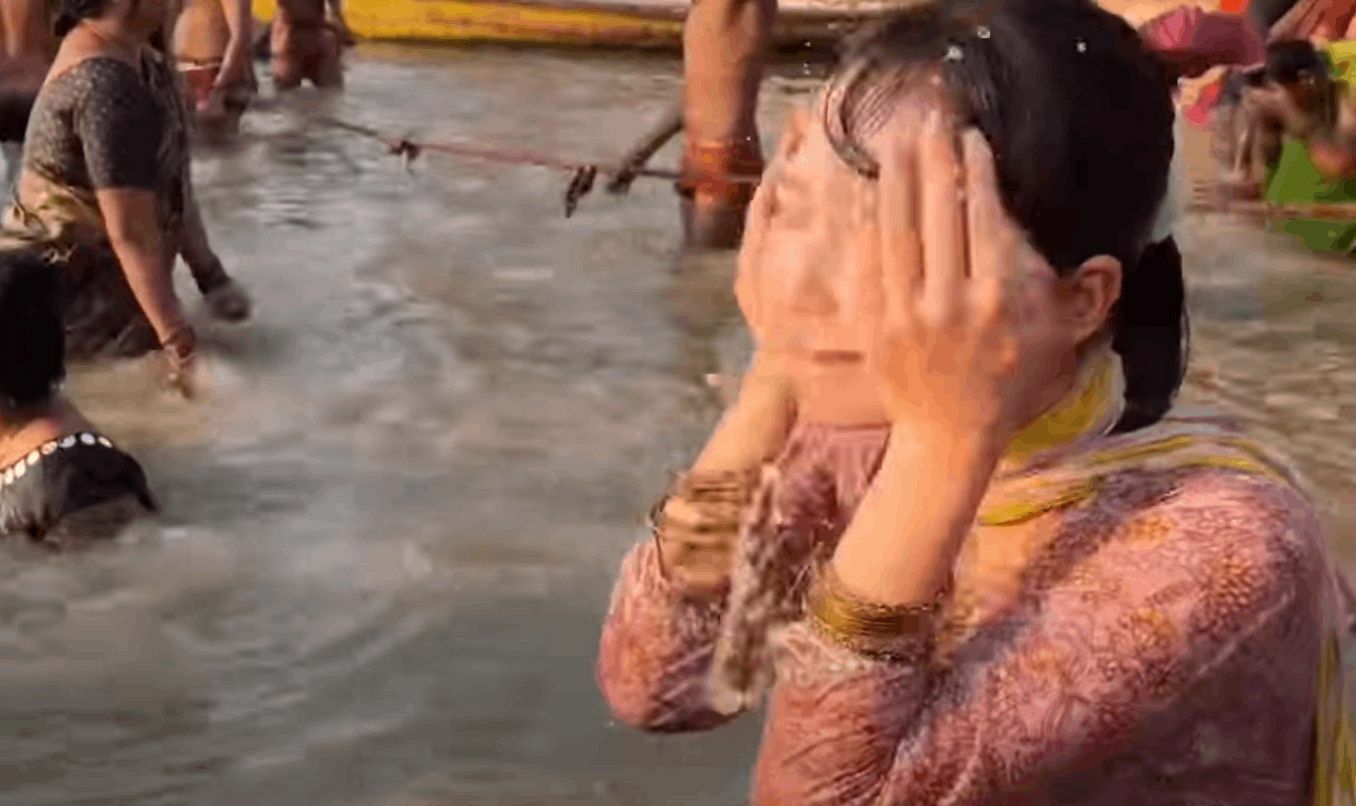 จากคลิปของเมกุนั้น แสดงให้เห็นว่าเธอสวมชุดอินเดียและเดินลงในแมน้ำคงคา ในช่วงเวลาประมาณ 6.08 น. ตามเวลาท้องถิ่น และ หันหน้าไปทางทิศตะวันออก ตามตำแหน่งพระอาทิตย์ขึ้น ซึ่งเป็นส่วนหนึ่งของพิธีชำระล้าง ก่อนจุ่มศีรษะลงในแม่น้ำ และกวักน้ำขึ้นมาล้างหน้าและถูซ้ำหลายครั้ง