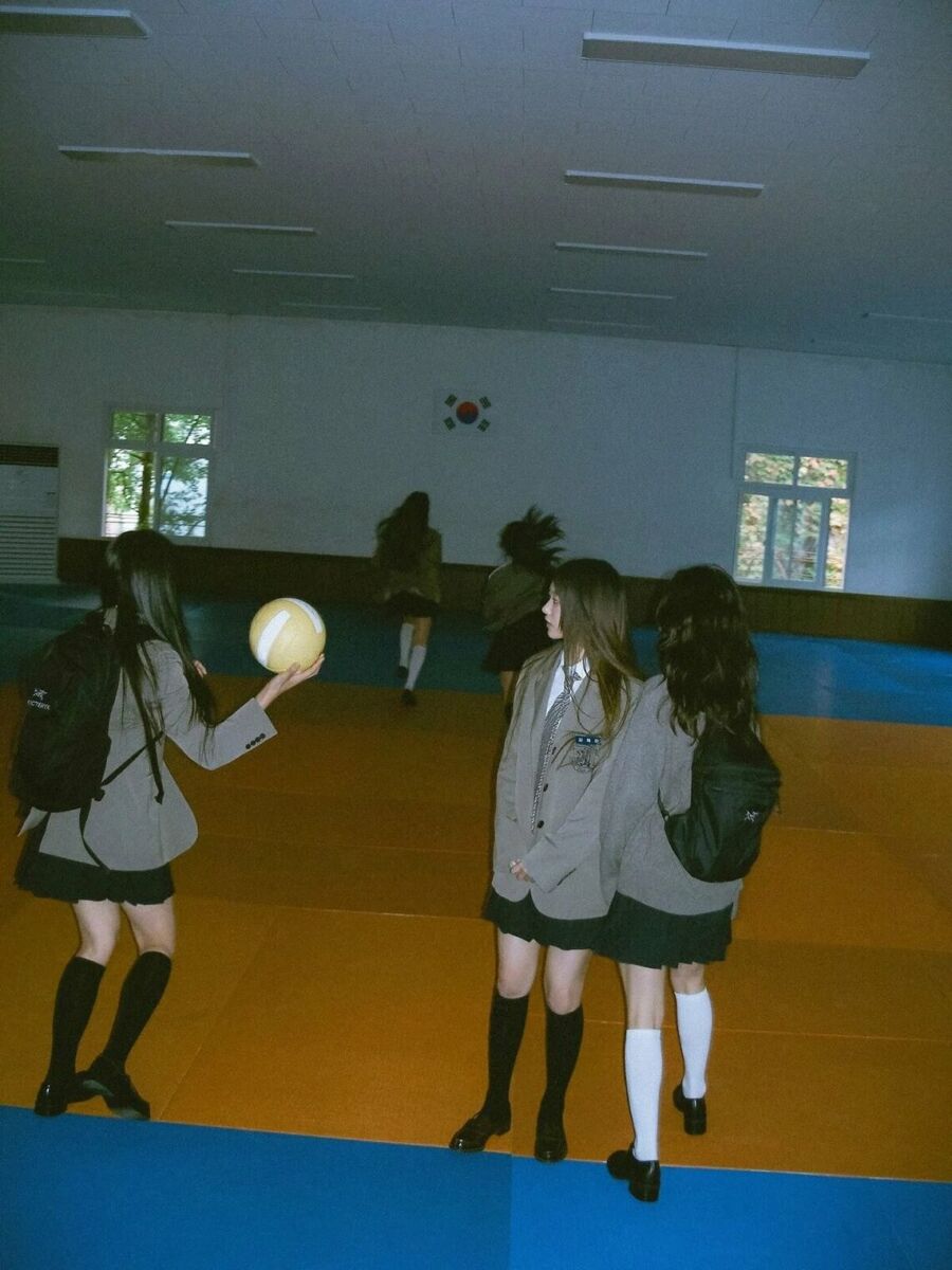 ภาพแนวตั้งเซ็ตนี้ให้บรรยากาศเหมือนรูปถ่ายสมัย Y2K ที่ใช้แฟลชสาดออกมาจากหล่อฟิล์ม พร้อมกับสาว ๆ ในเครื่องแบบฤดูหนาวของนักเรียนเกาหลี แปลกตาเป็นอย่างมากเมื่อเทียบกับตอนเพลง Attention แต่ก็สวยไม่แพ้กัน
