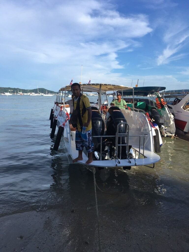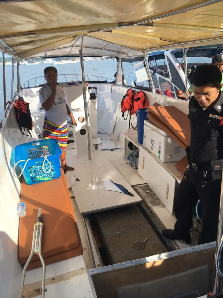 ที่เกิดเหตุพบ เรือสปีดโบ๊ท 2 เครื่องยนต์ ชื่อ โชคสมบูรณ์ 95 สีขาว จอดเทียบชายหาดอ่าวฉลอง มี นายดล หย่าหลง เป็นเจ้าของเรือ สภาพได้รับความเสียหาย จากการตรวจสอบ พบฝาผนังพื้นเรือและกระจกแตกกระจัดกระจายบนพื้นเรือบริเวณท้องเรือกลางลำเรือ เป็นทางยาวตั้งแต่บริเวณแผงควบคุมเรือทางส่วนหัวของเรือ ไปจนถึงท้ายเรือ ส่วนผู้ได้รับบาดเจ็บจำนวน 2 ราย ทางเจ้าหน้าที่ศูนย์ช่วยเหลือองค์การบริหารส่วนจังหวัดภูเก็ตได้ให้การช่วยเหลือปฐมพยาบาลเบื้องต้นก่อนนำส่งโรงพยาบาลสิริโรจน์ ภูเก็ต เพื่อให้แพทย์ช่วยเหลือ