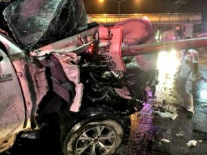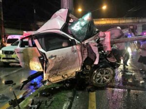 หนุ่มภูเก็ตขับรถกระบะมาด้วยความเร็วฝนตกถนนลื่นทำให้รถเสียหลักฟาดไปชนกับเสาไฟฟ้าเกาะกลางจนเสียชีวิตคาที่