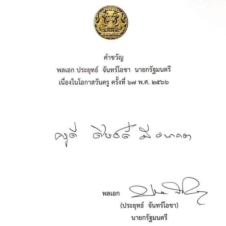 ประยุทธ์ มอบ คำขวัญวันครู 2566 “ครูดี ศิษย์ดี มีอนาคต”