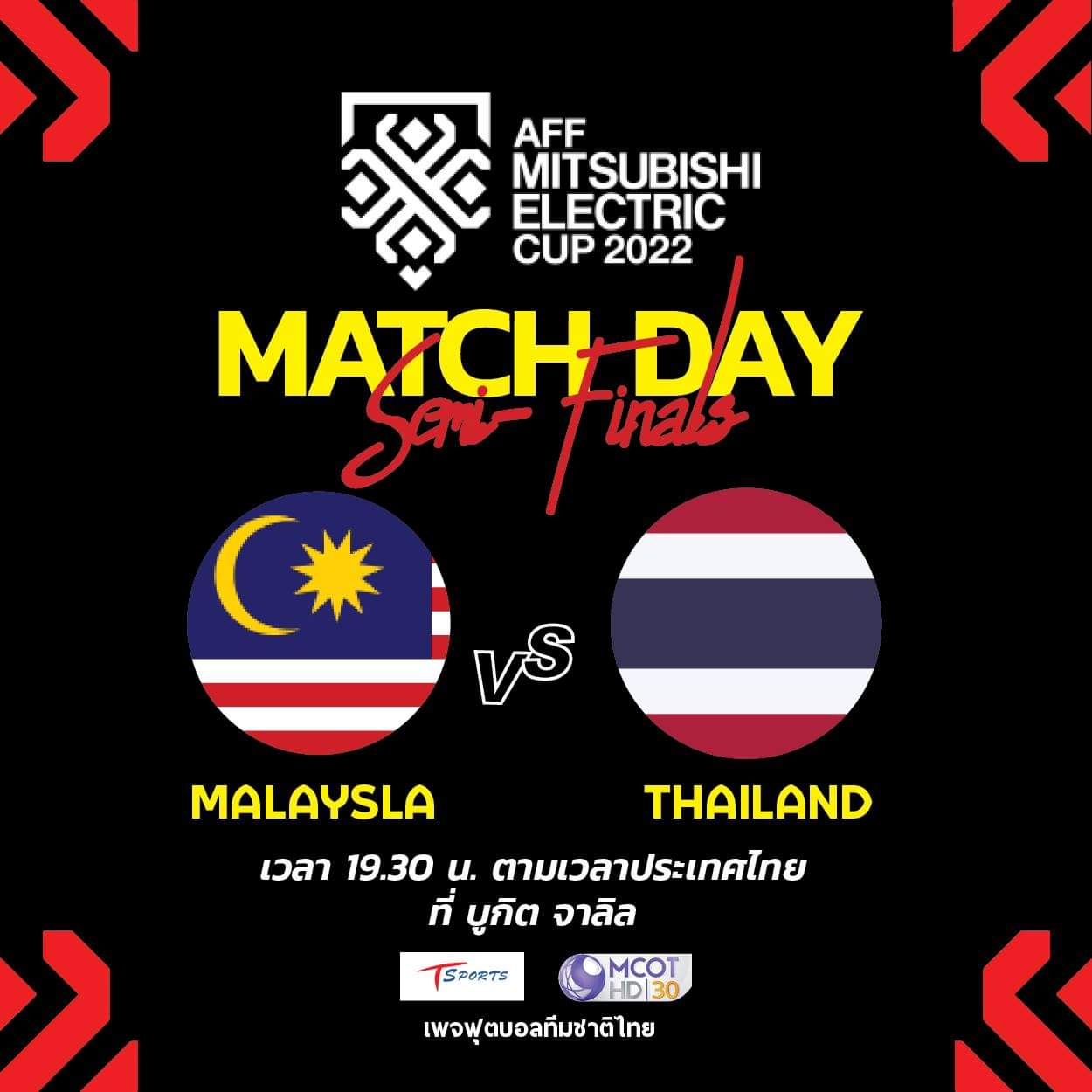 เดินทางมาถึงรอบรองชนะเลิศ ชิงแชมป์อาเซียน คัพ 2022 ทีมชาติไทยในฐานะแชมป์กลุ่มเอ ลงสนามในฐานะทีมเยือน พบทีมอันดัย 2 จากกลุ่มบี เสือเหลืองมาเลเซีย เตะสนั่นสนาม บูกิต จาลิล แข่งขันเวลา ตั้งแต่เวลา 19:30 น.