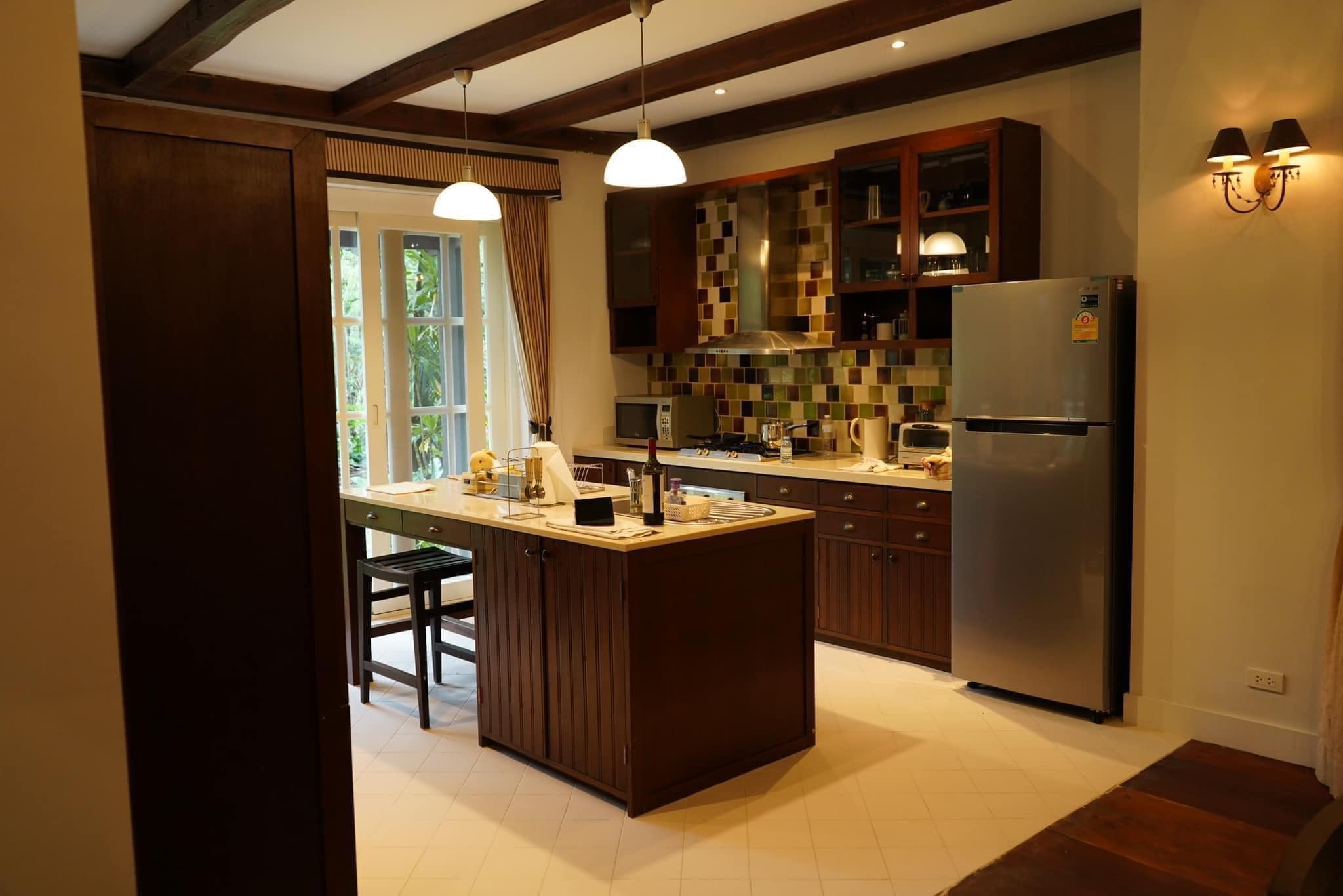อีกั้งภายในตัวบ้านยังตกแต่งคล้ายกับสไตล์ตะวันตก เน้นโทนสีขาว รับกับแสงไฟส้มในยามค่ำคืน ให้ความอบอุ่นเหมาะสำหรับครอบครัว 3 ห้องนอน 1 ห้องครัว เหมาะกับการพักผ่อนสุด ๆ