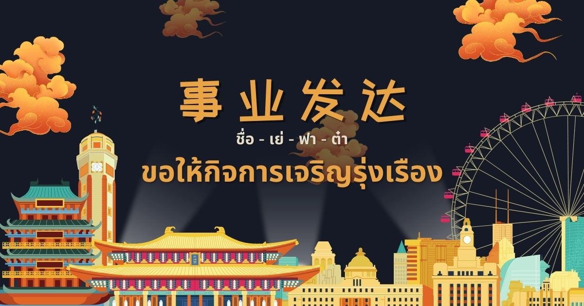 - 事 业 发 达 (ชื่อ – เย่ – ฟา – ต๋า) แปลว่า ขอให้กิจการเจริญรุ่งเรือง