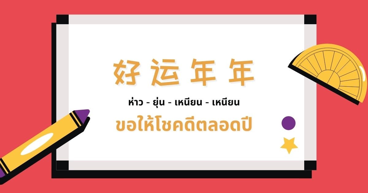 - 好 运 年 年 (ห่าว – ยุ่น – เหนียน – เหนียน) แปลว่า ขอให้โชคดีตลอดปี