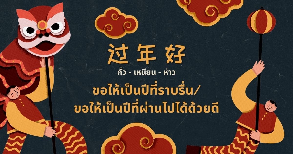 - 过 年 好 (กั้ว – เหนียน – ห่าว) แปลว่า ขอให้เป็นปีที่ราบรื่น/ขอให้เป็นปีที่ผ่านไปได้ด้วยดี