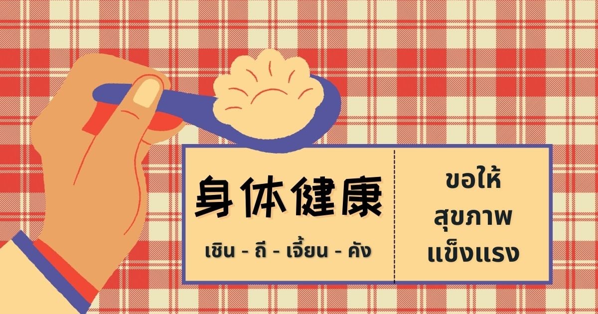 - 身 体 健 康 (เชิน – ถี – เจี้ยน – คัง) แปลว่า ขอให้สุขภาพแข็งแรง