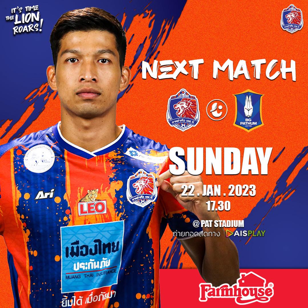 - 25 พ.ย. 2022 แพ้ ชลบุรี เอฟซี 1-0 (เยือน) ไทย ลีก