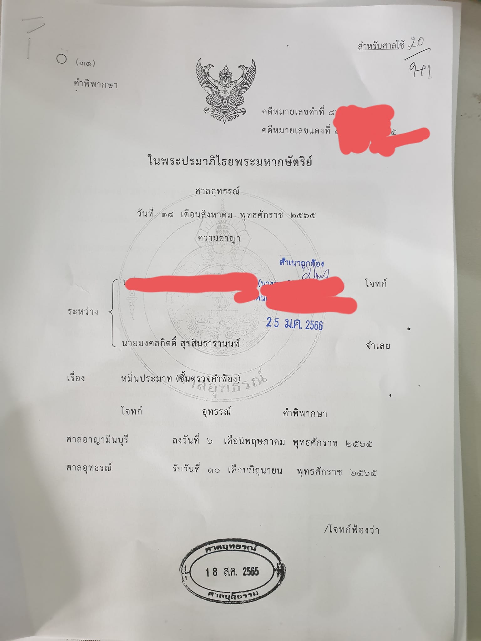 ดังนั้นทีมกฎหมายจึงพิจารณาจะฟ้องร้องกลับตามกฎหมายอาญา ม.175 เรื่องการฟ้องเท็จ โดยจะเรียกร้องค่าเสียหาย 100 ล้านบาท แต่ทั้งนี้ก็ขึ้นอยู่กับดุลยพินิจของศาลว่าจะพิจารณาอย่างไร