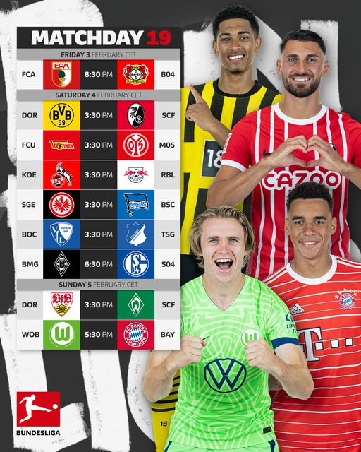 ตารางแข่งขัน บุนเดสลีกา เยอรมัน 2022/23 สัปดาห์ที่19 แข่ง 3-5 ก.พ. นี้