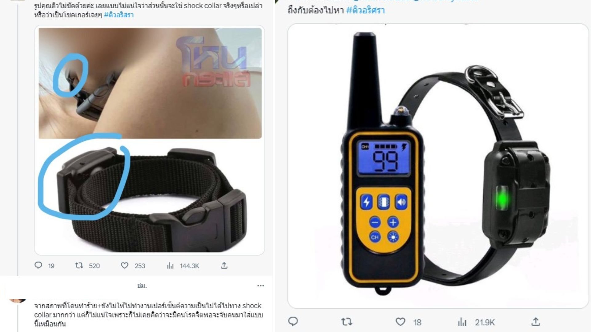 “จากสภาพที่โดนทำร้าย+ขังไม่ให้ไปทำงานเปอร์เซ็นต์ความเป็นไปได้ไปทาง shock collar มากกว่า แต่ก็ไม่แน่ใจเพราะก็ไม่เคยคิดว่าจะมีคนโรคจิตพอจะจับคนมาใส่แบบนี้เหมือนกัน”
