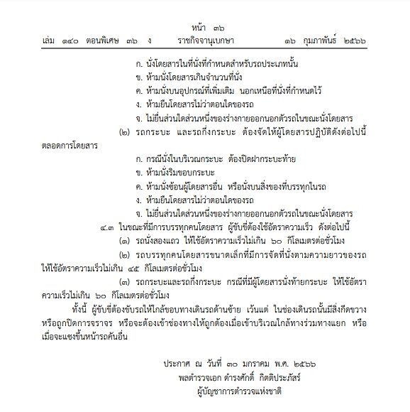 ในเอกสารระบุว่า “โดยที่เป็นการสมควรกำหนดหลักเกณฑ์ในการบรรทุกคนโดยสาร การใช้อัตราความเร็ว และการยกเว้นการรัดเข็มขัดนิรภัยสำหรับรถนั่งสองแถว รถบรรทุกคนโดยสารขนาดเล็กที่มีการจัดที่นั่ง ตามความยาวของรถ รถกระบะ และรถกึ่งกระบะ เพื่อให้เกิดความปลอดภัยในการขับขี่และการโดยสาร