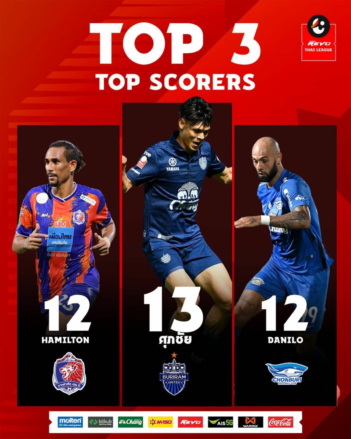 - ดานิโล อัลเวส (ชลบุรี เอฟซี) 12 ประตู