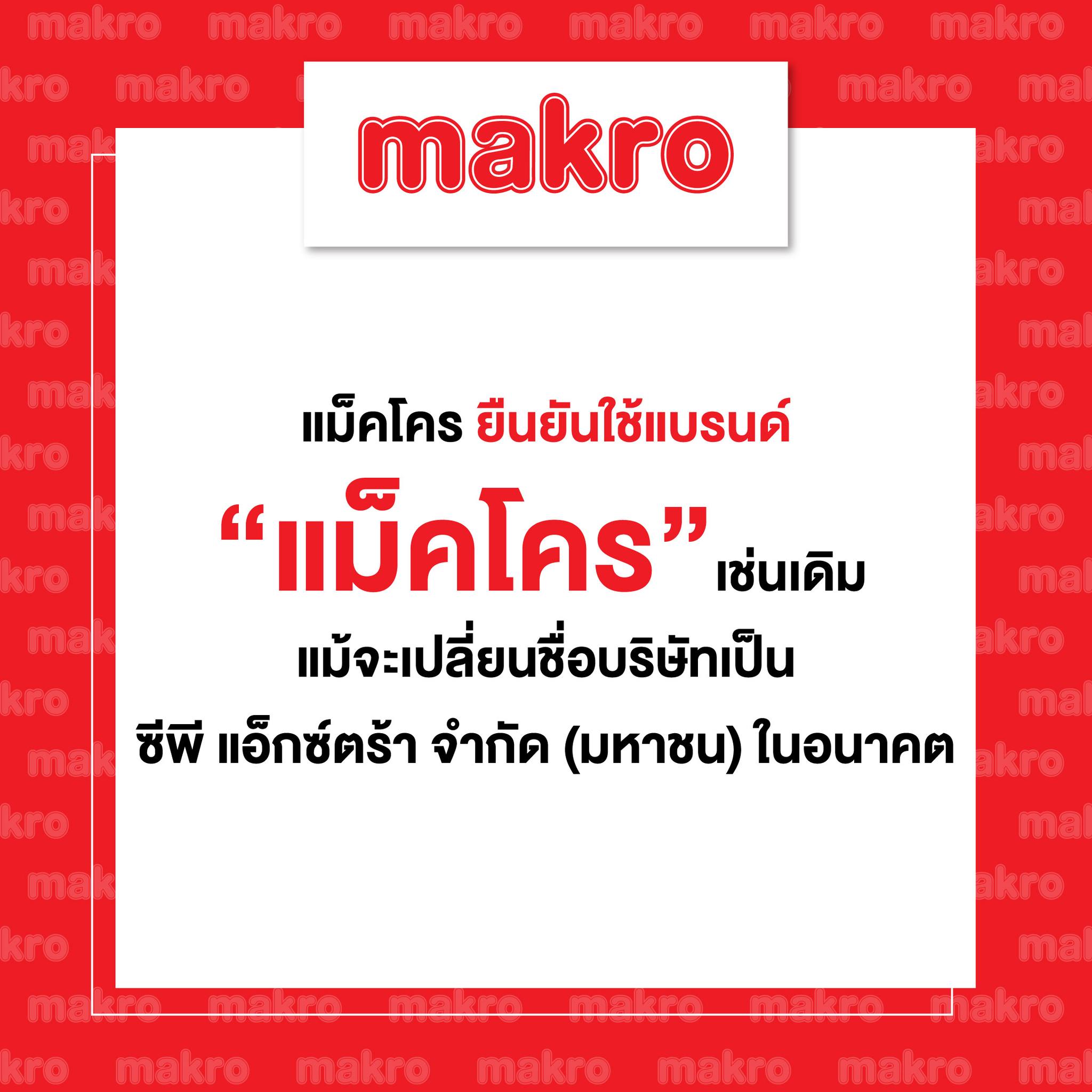 ห้างค้าส่ง แม็คโคร ยืนยันใช้ชื่อแบรนด์เดิม แม้จะเปลี่ยนชื่อบริษัทจาก สยามแม็คโคร จำกัด เป็น ซีพี แอ็กซ์ตร้า ก็ตาม