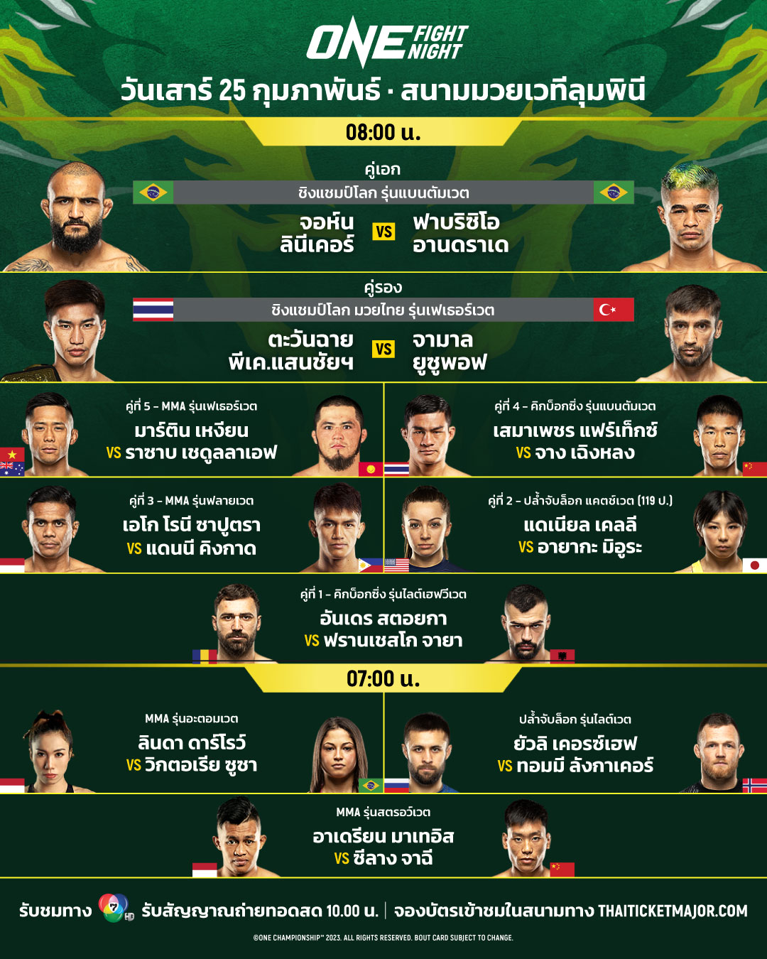 แฟนกีฬาชาวไทยสามารถจองบัตรเข้าชมในสนามเพื่อเชียร์ “ตะวันฉาย” แบบติดขอบเวทีได้แล้วตอนนี้ที่ Thai Ticket Major และติดตามข่าวสารและความคืบหน้าของ ONE ได้ที่เฟซบุ๊ก ONE Championship Thailand เว็บไซต์ www.onefc.com และอินสตาแกรม ONEChampTh