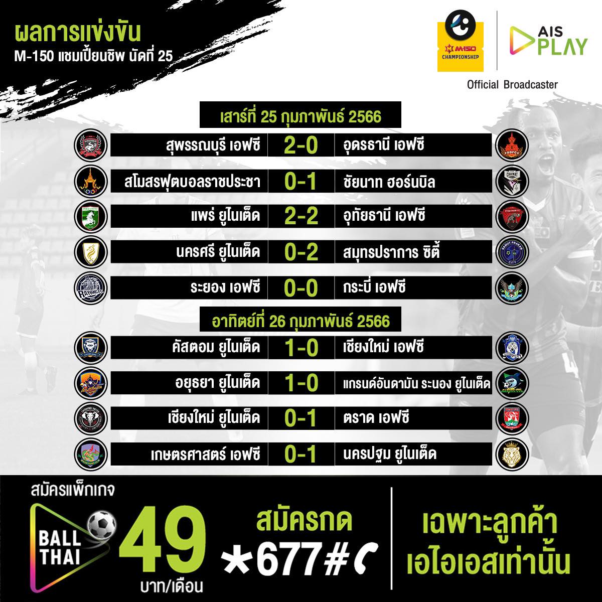 อันดับตารางคะแนน ไทยลีก2 M-150 แชมเปี้ยนชิพ 2022 2023 หลังจบนัดที่ 25 โดย 5 อันดับเป็นไปตามลำดับดังนี้