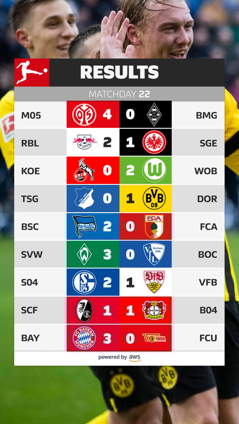 สรุปผลการแข่งขัน บุนเดสลีกา เยอรมัน หลังจบนัดที่ 22 ศึก บุนเดสลีกา เยอรมัน 2022