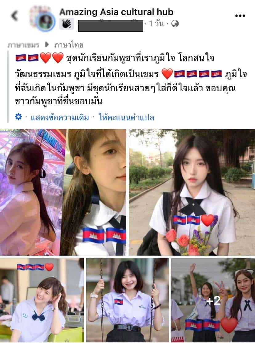 ล่าสุดมีชาวเน็ตได้โพสต์ภาพและข้อความในกลุ่ม Amazing Asia cultural hub โดยโพสต์รูปนักท่องเที่ยวจีนหลายคนสวมชุดนักเรียนไทย พร้อมติดสติ๊กเกอร์ธงชาติกัมพูชาและหัวใจภายในรูป ซึ่งหนึ่งในรูปนักท่องเที่ยวจีนนั้นก็มี จวีจิ้งอี หรือกระทั้ง ใบเฟิร์น พิมพ์ชนก ที่ไม่ใช่คนจีนอยู่ด้วย โดยชาวเน็ตคนดังกล่าวระบุว่า “ชุดนักเรียนกัมพูชาที่เราภูมิใจ โลกสนใจวัฒนธรรมเขมร ภูมิใจที่ได้เกิดเป็นเขมร ภูมิใจ ที่ฉันเกิดในกัมพูชา มีชุดนักเรียนสวยๆใส่ก็ดีใจแล้ว ขอบคุณชาวกัมพูชาที่ชื่นชอบมัน”