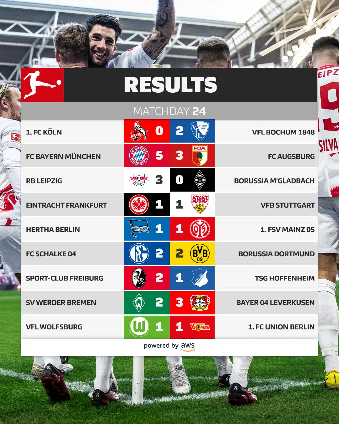 สรุปผลบอลและตารางคะแนน บุนเดสลีกา เยอรมัน หลังจบสัปดาห์ที่ 24