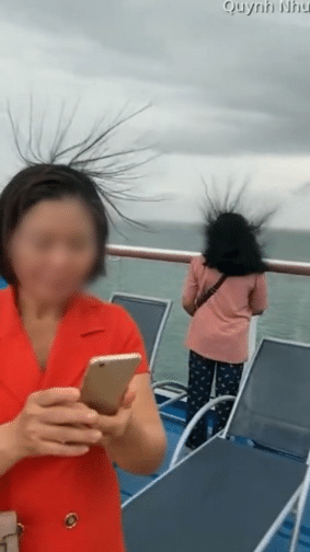 ผู้ใช้ทวิตเตอร์ @gnuman1979 โพสต์คลิปวิดีโอนักท่องเที่ยวยิ้มร่า หัวเราะขณะผมตั้งชี้ขึ้นฟ้า ตอนกำลังชมวิวกลางเรือ แถมหลายคนยังหยิบโทรศัพท์ขึ้นมาบันทึกปรากฏการณ์สุดแปลกประหลาดนี้อีกต่างหาก พร้อมระบุว่า “Run!!!! Danger danger! (วิ่ง!!! อันตราย อันตราย)”