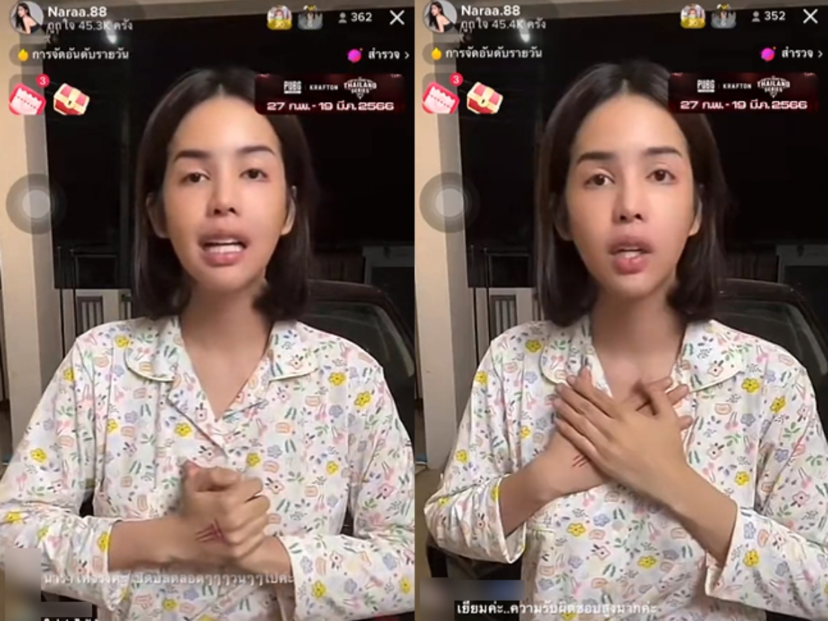 “ทุกคนคะ ใจเย็นก่อน ตอนนี้นาราโดนรวบแล้ว เดี๋ยวก็ประกันตัวออกมา ไม่วันนนี้ก็พรุ่งนี้ ทุกอย่างโดนยึดหมดเลย ออกมาสู้ต่อ ทำมาหากินต่อ ก็ต้องเป็นไปตามกระบวนการ ผู้เสียหายไปร้องเรียน ตำรวจก็มาจับตามที่คนไปแจ้งความ ทำตามหน้าที่ เดี๋ยวนาราก็ออกมาสู้ออกมาหาเงินใช้หนี้ทุกคน ทุกคนไม่ต้องกังวล แล้วเจอกัน” นารากล่าว