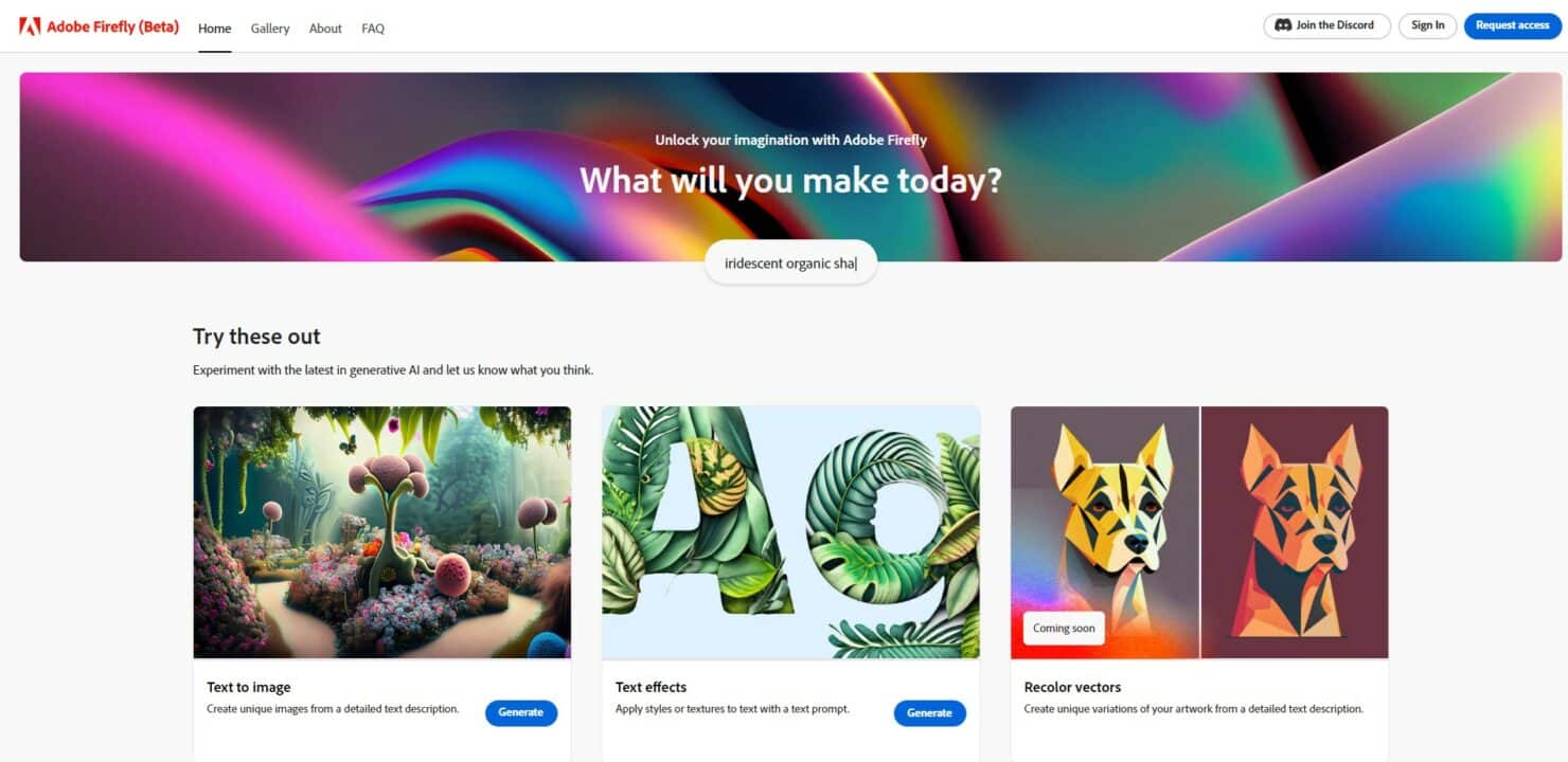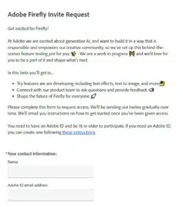 ณ ตอนนี้ (23 มี.ค. 66) Firefly ยังอยู่ในรุ่น Beta ซึ่งยังคงจำกัดจำนวนผู้เข้าใช้งาน ทำให้ต้อง “Request access” ให้ทาง Adobe อนุมัตก่อนถึงจะสามารถเข้าใช้งานได้
