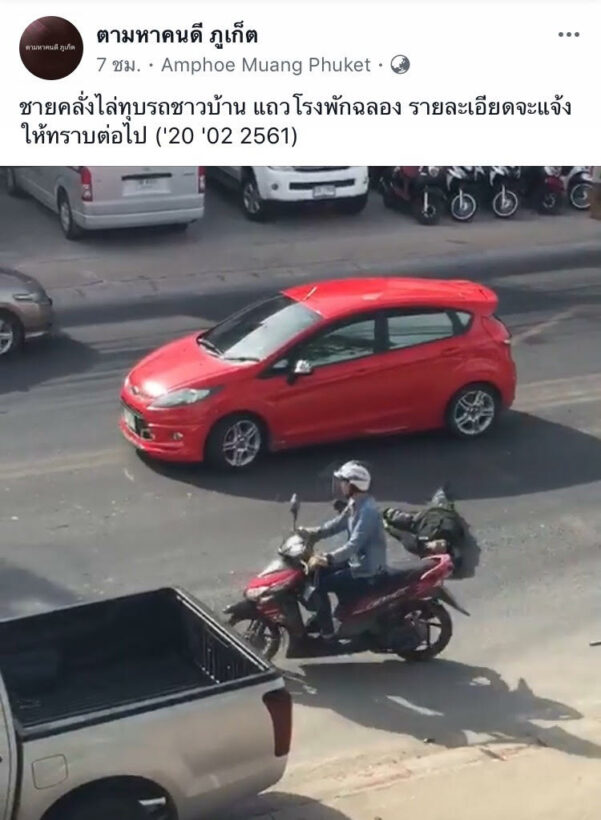วันนี้ (20ก.พ.) ผู้สื่อข่าวรายงานว่า ได้มีผู้ใช้เฟสบุค ชื่อว่า ตามหาคนดีภูเก็ต ได้มีการโพสต์ข้อความว่า ชายคลั่งไล่ทุบรถชาวบ้าน แถวโรงพักฉลอง รายละเอียดจะแจ้งให้ทราบต่อไป (’20 ’02 2561) โดยได้ลงคลิปวีดี