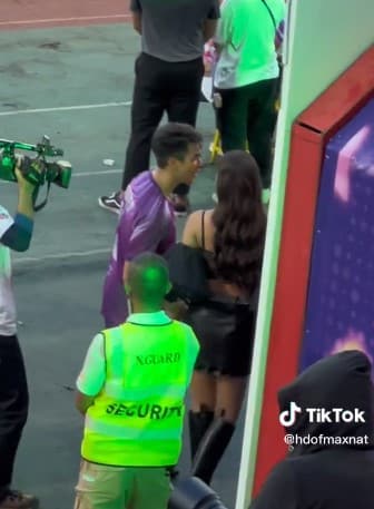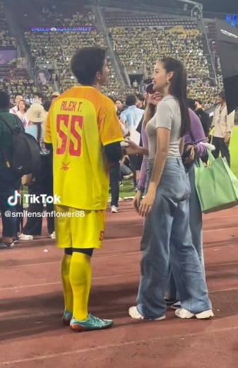 แต่ก็ไม่วายมีคนตาดี แอบเห็นโมเมนต์หวาน ๆ ของคู่รักคนดังอย่าง อาเล็กและโบว์ ที่งานนี้มุ้งมิ้งกันแบบเปิดเผย มีทั้งช็อตจับหัว ลูบแก้ม ยิ้มและหัวเราะให้กัน บอกเลยว่าใครขึ้นเรือนี้ไม่มีอับปางแน่นอน