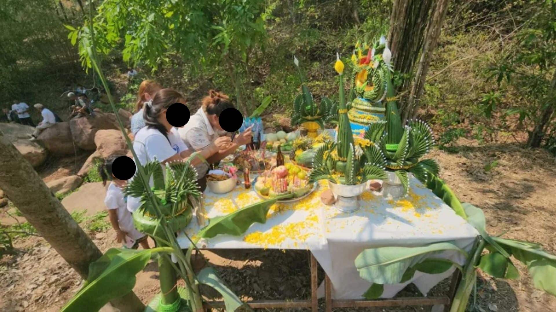 ทั้งนี้เมื่อทราบข่าวเรื่องต้นตะเคียนทองยักษ์ ชาวบ้านในบริเวณใกล้เคียงจำนวนนวนกว่า 200 ชีวิต ก็ได้พากันเข้าไปดูต้นตะเคียน พร้อมด้วยธูปเทียน อาหารทั้งขาว-หวาน และสุรา ตามด้วยการตีฆ้องเปิดทางกลางป่า เพื่อเชิญต้นตะเคียนที่วางนอนอยู่ในร่องน้ำขึ้นมา