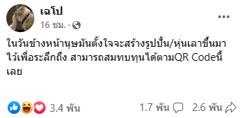 ทางเพจระบุว่า “ในวันข้างหน้านุษมันตั้งใจจะสร้างรูปปั้น/หุ่นเลาขึ้นมาไว้เพื่อระลึกถึง สามารถสมทบทุนได้ตาม QR Code นี้เลย”