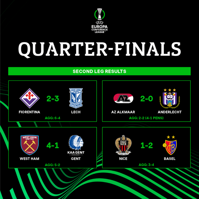 รายงาน ผลบอล เมื่อคืนนี้ 20 เมษายน 2566 ศึกฟุตบอล ยูฟ่า ยูโรป้า คอนเฟอเรนซ์ ลีก รอบ 8 ทีมสุดท้าย เกมที่สอง ในเกมนี้เป็นการพบกันของทีมที่น่าสนใจอย่าง ฟิออเรนติน่า พบ เลค พอซนัน และ เวสต์แฮม พบ เก้นท์ ศึกฟุตบอล ยูโรป้าคอนเฟอเรนซ์ลีก รอบ 8 ทีมสุดท้าย