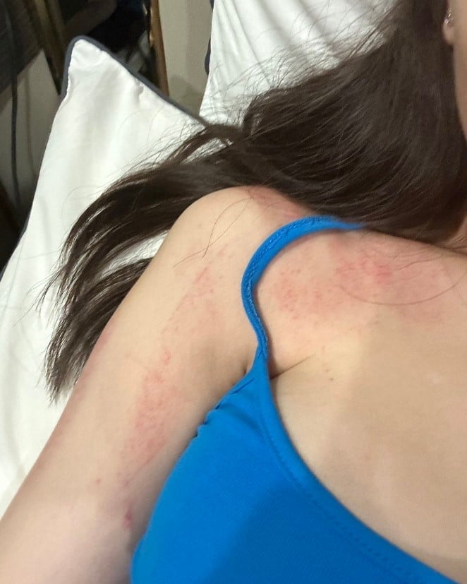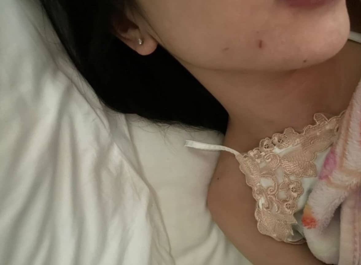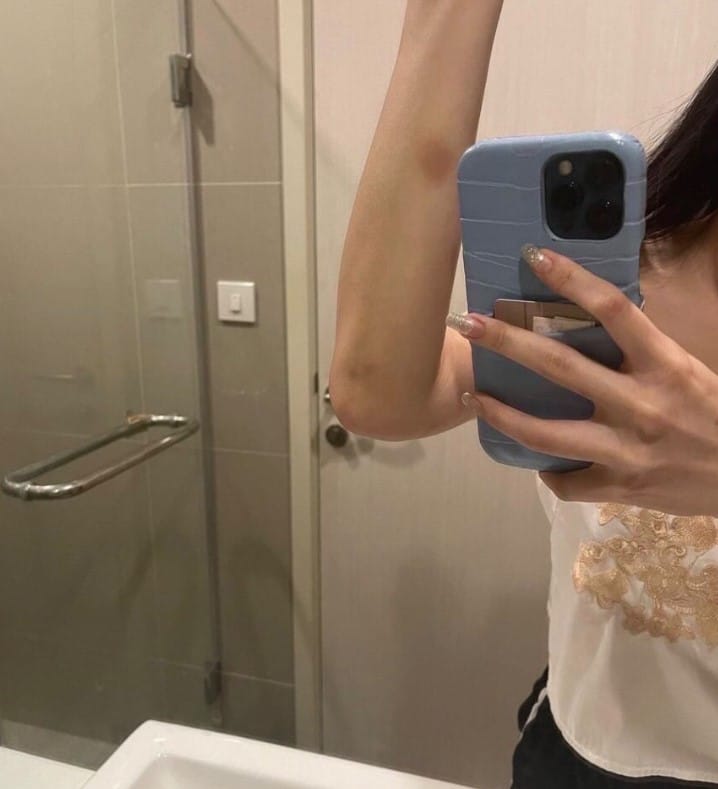 พร้อมกันนี้คนสนิทยังได้เปิดเผยภาพที่หญิงคนดังกล่าวถูกทำร้าย จนเป็นรอยช้ำตั้งแต่ลำคอไปถึงแขน พร้อมแคปชั่นว่า “ต. ขู่ฆ่าและ ขังพี่สาวเราไว้ในห้องน้ำแล้ว ต. ก็ราเน้ำใส่พี่สาวเรา ส่วน ต. นั่งเล่นโทรศัพท์ ไปด้วยยิ้มไปด้วย น่ากลัวสัส เควี้ยงโทรศัพท์พี่สาวเราเพื่อไม่ให้โทรหาคนอื่นพี่สาวเราที่โดนทุบตีมาก่อนหน้านี้ก็ต้องอยู่ในห้องน้ำ”