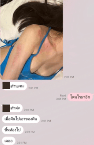 นอกจากนี้แล้ว เพื่อนอีกคนของหญิงสาวที่ถูกทำร้าย ยังได้ออกมาเปิดแชทสนทนา ที่เพื่อนส่งมาให้ดูว่าโดนฝ่ายชายทุบหัวจนเลือดอาบ “บังคับเพื่อนกูไม่ให้ออกมาเจอเพื่อน ๆ โลกภายนอกให้ตัดให้หมด ขู่ฆ่าทุกครั้งที่ทะเลาะ เอาปืนมาถือขู่ จะไปไหนจะทำอะไรต้องมีมันอยู่ด้วยตลอด”