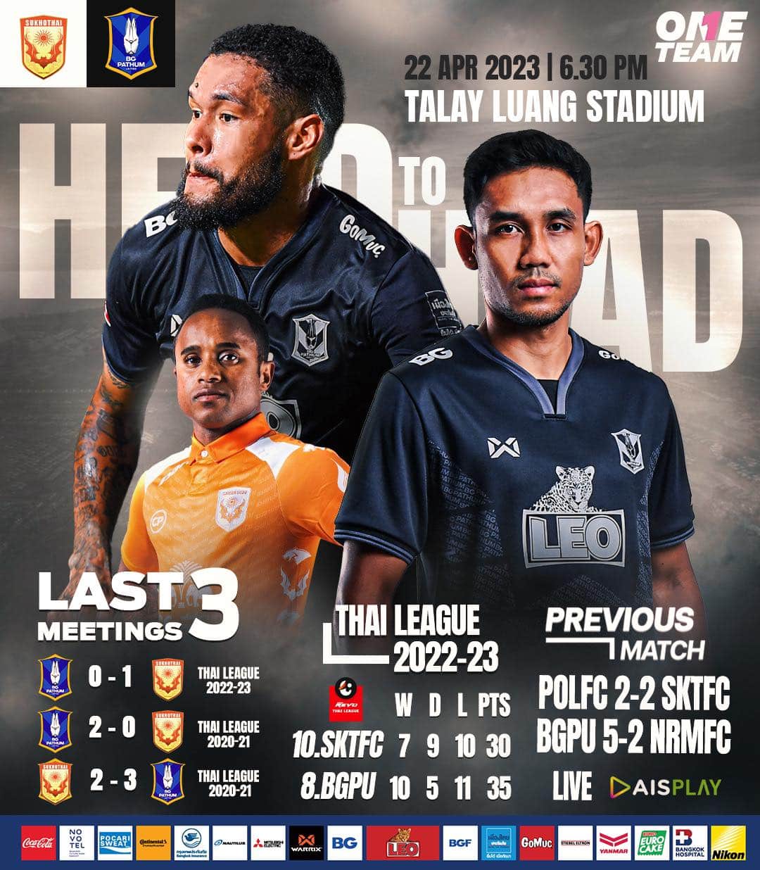 สถิติ Head to Head 5 นัดหลังสุด สุโขทัย VS บีจี ปทุม