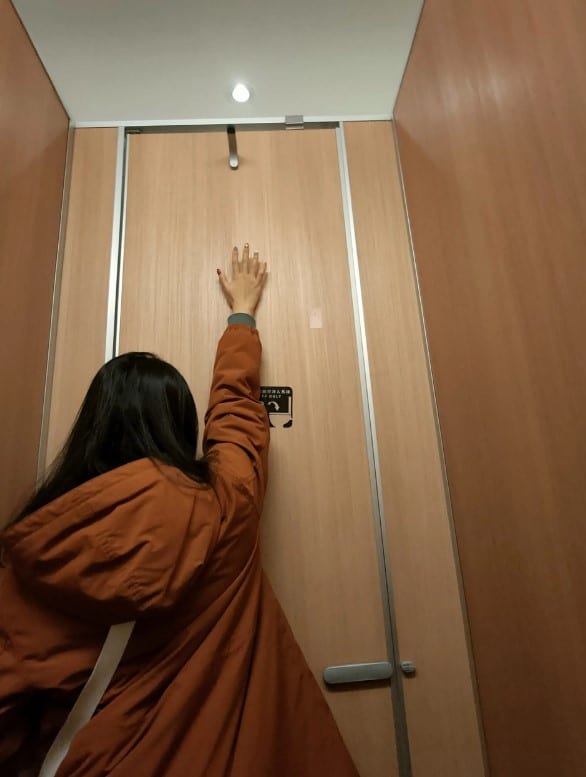 เมื่อไม่กี่วันที่ผ่านมา ในหน้าเว็บไซต์หนึ่งของไต้หวัน ได้มีหญิงสาวออกมาโพสต์ภาพตัวเองที่ทำท่าเอื้อมมือจับตะขอหลังประตูห้องน้ำ พร้อมข้อความว่า