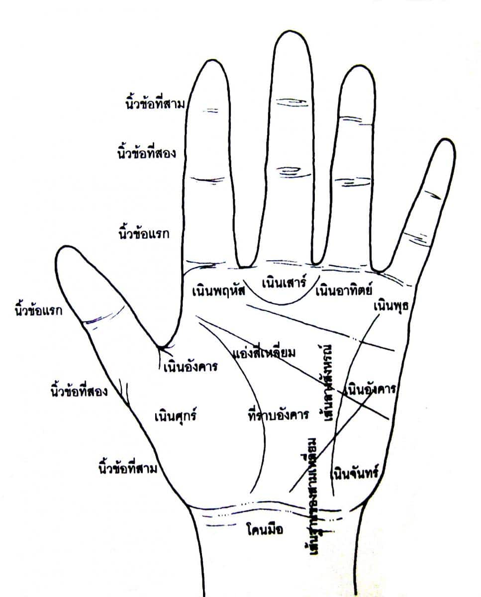 - เส้นชีวิต คือ เส้นโค้งลากยาวตั้งแต่เหนือหัวแม่มือลงมา ใช้ทำนายการเปลี่ยนแปลงที่จะเกิดขึ้นในชีวิต สุขภาพ