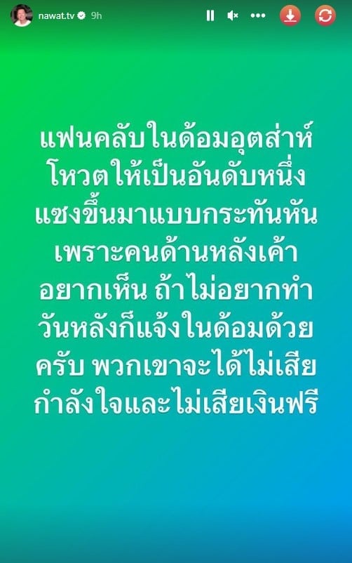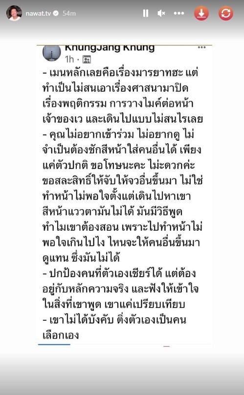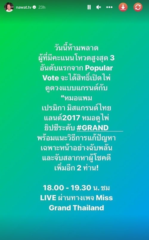 – หลังจากณวัฒน์ได้ให้คำแนะนำเฌอเอมไปแล้วบนเวที แต่หลังจากนั้นก็ยังคงโพสต์สตอรี่ในอินสตาแกรมส่วนตัว IG @nawat.tv เกี่ยวประเด็นเฌอเอมไม่ยอมดูดวงอย่างต่อเนื่อง