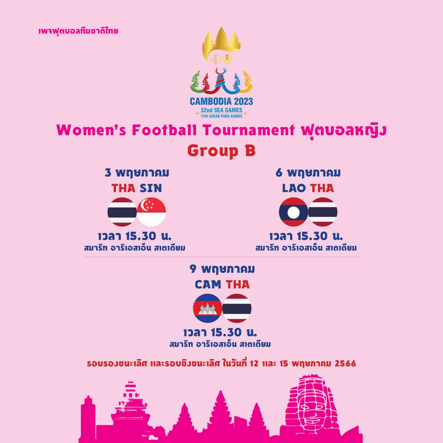 โปรแกรมการแข่งขันและถ่ายทอดสด ฟุตบอลหญิง ซีเกมส์ 2023