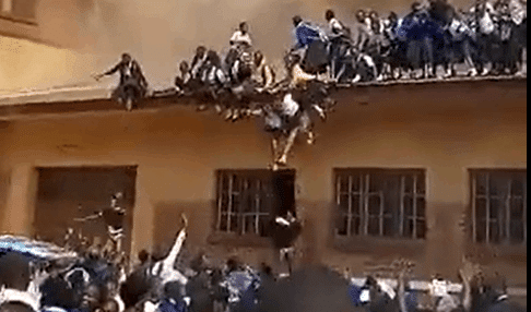 🚨#BREAKING: Students seen jumping from roof as large fire engulfs high school in Kolwezi, DR #Congo; deaths and injuries reported, according to local media pic.twitter.com/wBqf2WPNp7