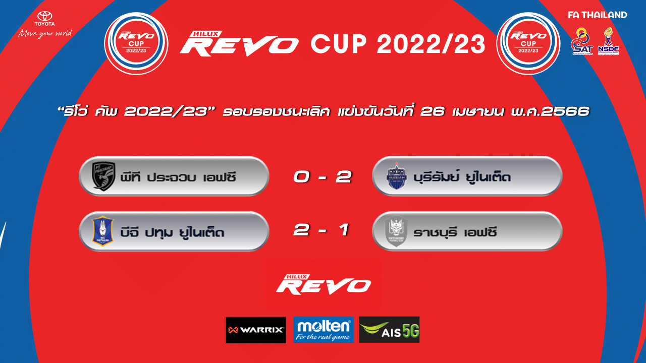 สรุปผลบอล รีโว่ คัพ 2022/23 รอบรองชนะเลิศ ประจำวันที่ 26 เมษายน 2566
