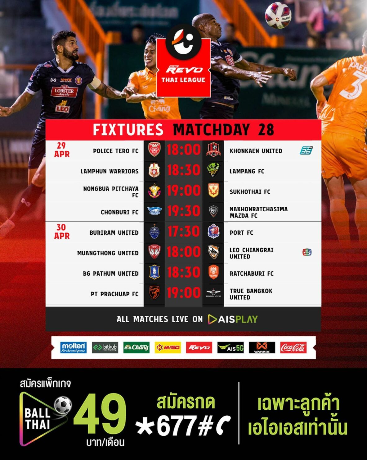 โปรแกรมถ่ายทอดสด ฟุตบอล รีโว่ ไทยลีก REVO THAI LEAGUE 2022/23 ประจำสัปดาห์ที่ 28