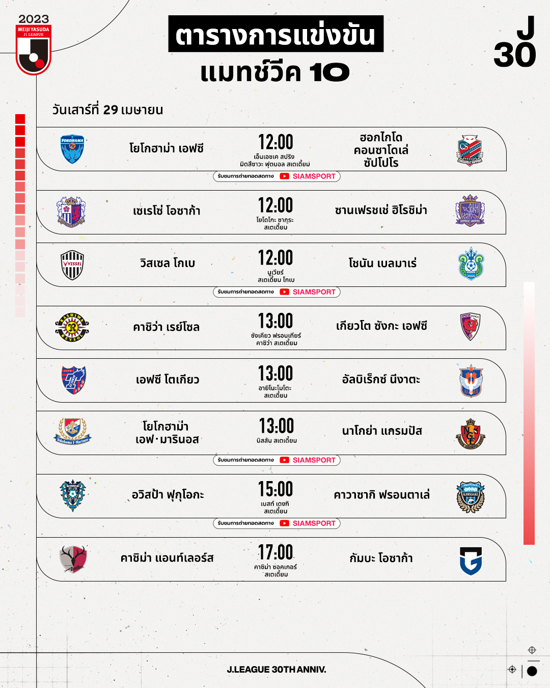 ตารางแข่งขัน เจลีก ญี่ปุ่น 2023 โปรแกรมฟุตบอล เจลีก สัปดาห์ที่ 10