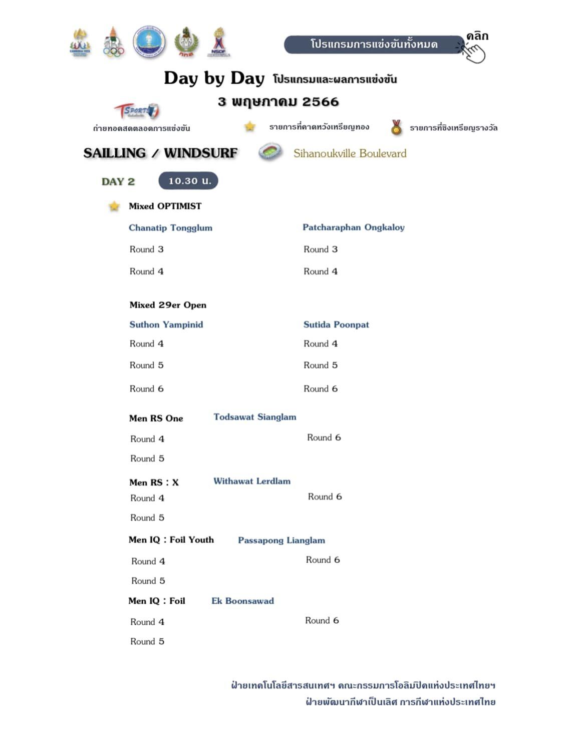 - เวลา 10:30 น. IQ:Foil M Fleet Racing พัศพงษ์ เลียงลำ