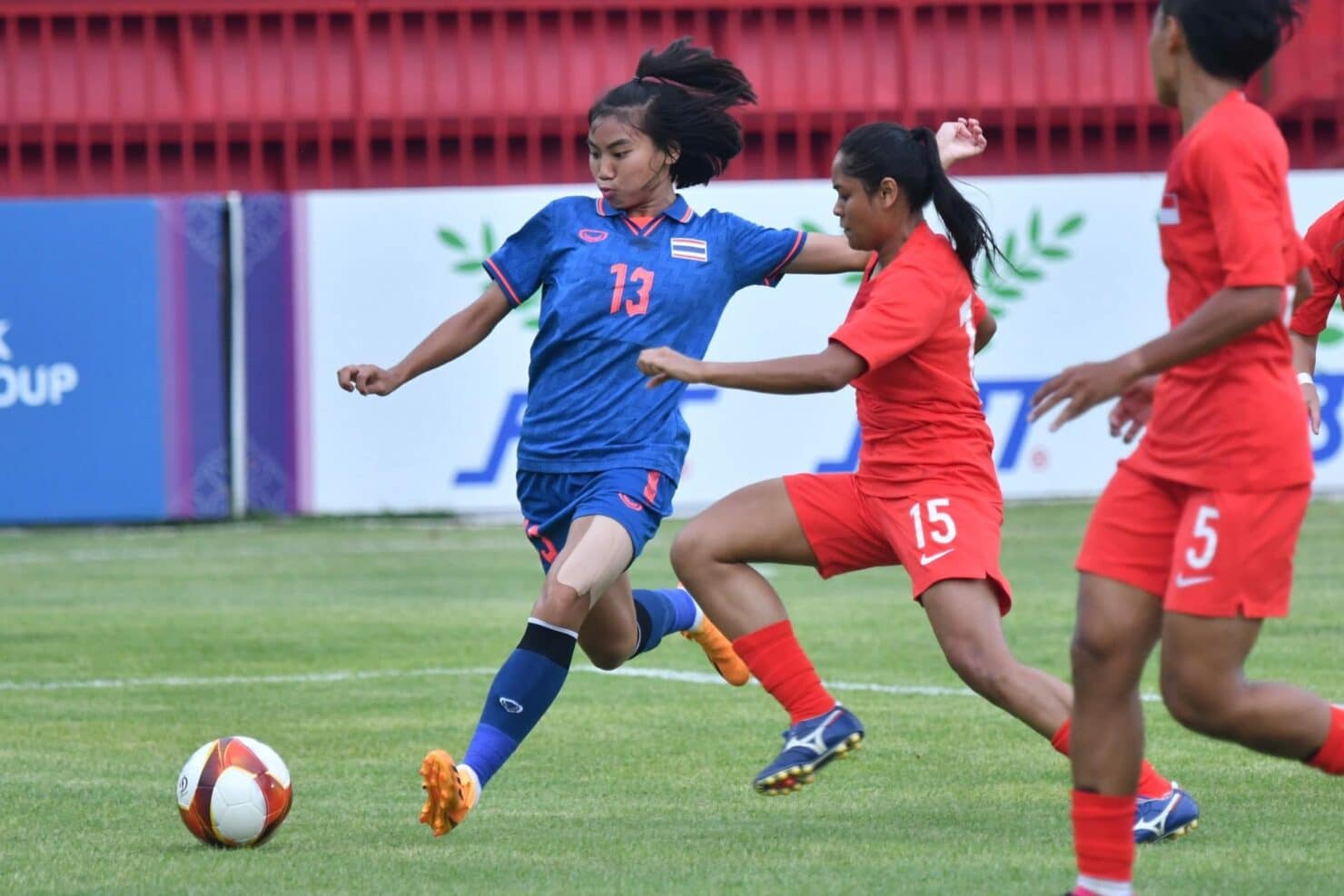 นาทีที่ 67 จิราภรณ์ มงคลดี เก็บตกจากจังหวะผิดพลาดของผู้รักษาประตูสิงคโปร์ ยิงให้ไทยนำห่าง 4-0