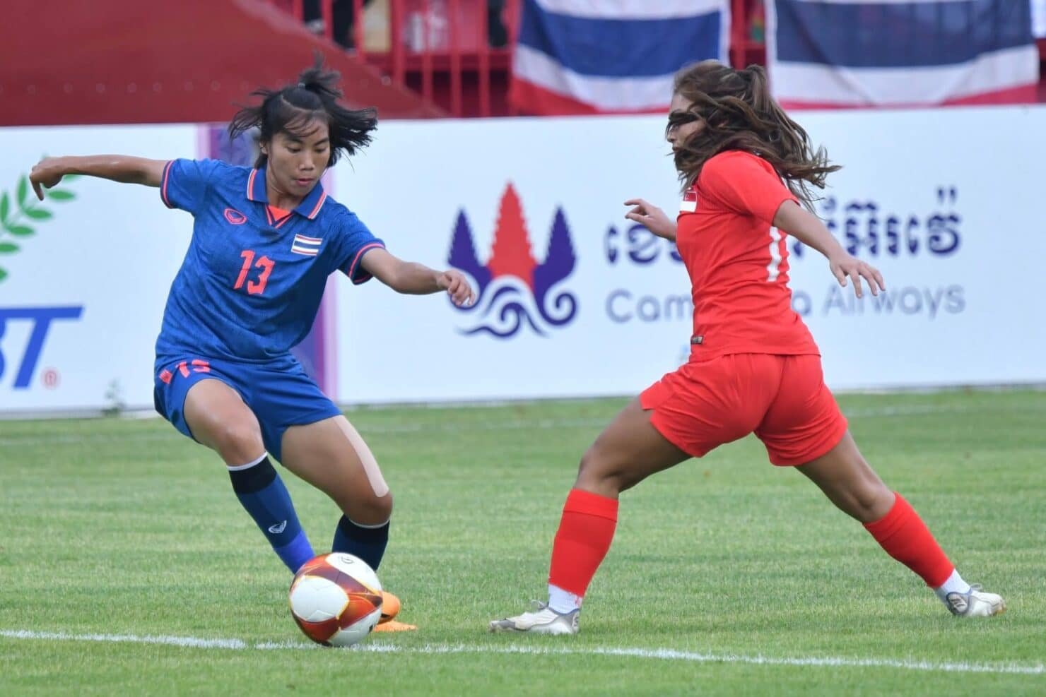 วันที่ 3 พฤษภาคม 2566 เวลา 16.00 น. ณ สมาร์ต อาร์เอสเอ็น สเตเดียม การแข่งขันฟุตบอลหญิง ซีเกมส์ ของกลุ่มบี นัดแรก ทีมชาติไทย พบกับ สิงคโปร์ เกมนี้ นฤพล แก่นสน เฮดโค้ชทีมชาติไทย ส่งเสาวลักษณ์ เพ็งงาม ,อรพินท์ แหวนเงิน และ จิราภรณ์ มงคลดี เป็นสามประสานในแดนหน้า