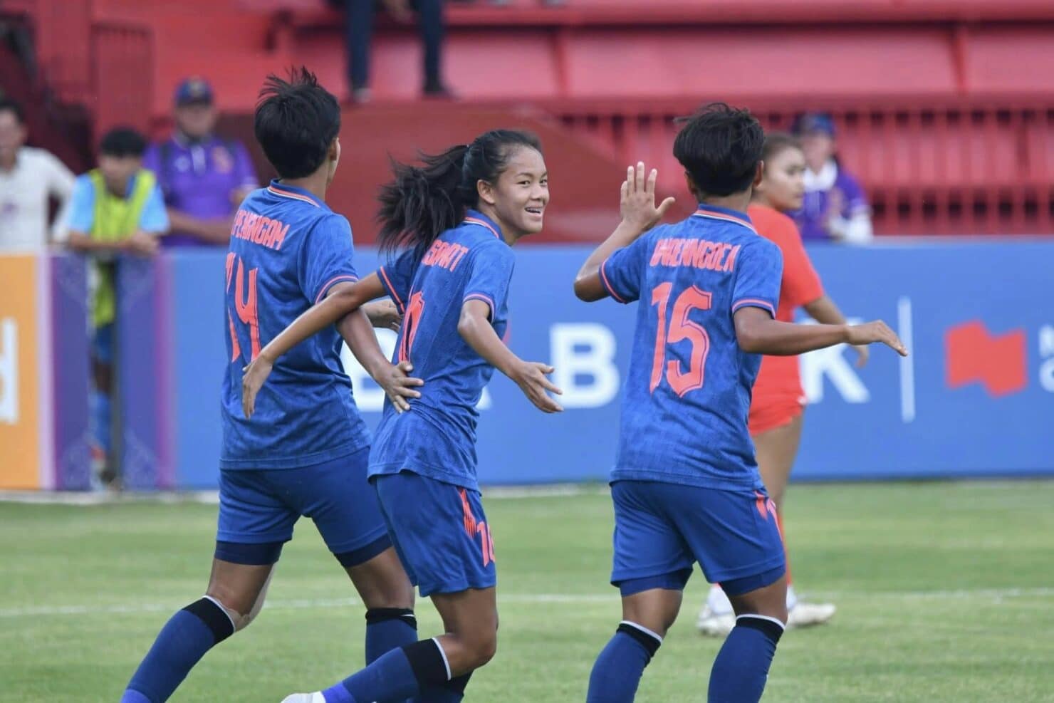 นาทีที่ 15 จิราภรณ์ มงคลดี ชิ่งบอลกับ อรพินท์ แหวงเงิน และเป็น อรพินท์ แหวนเงิน ที่ยิงด้วยขวาบอลเข้าประตู ให้ไทยนำไปเป็น 2-0